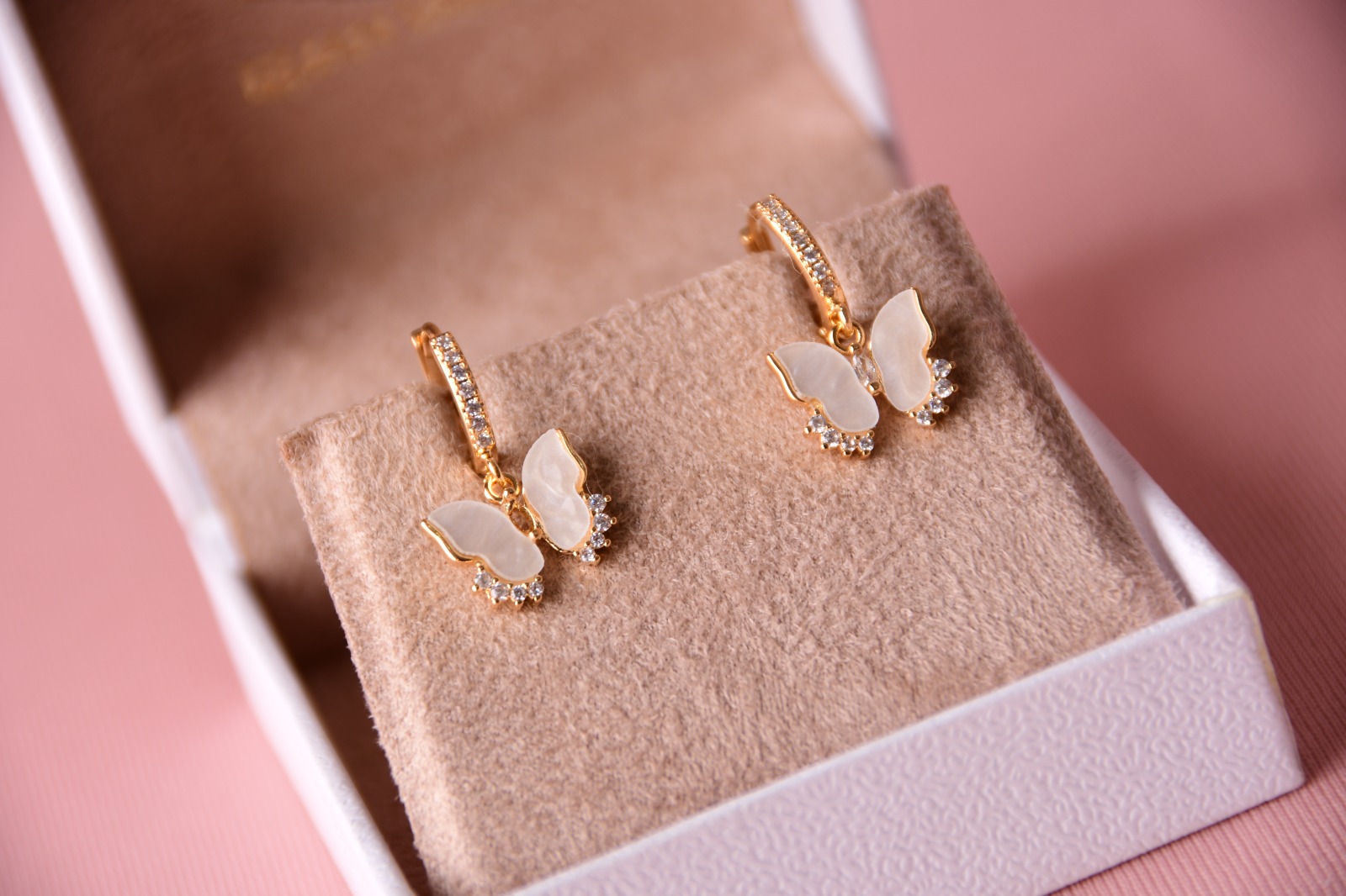 Brinco argola borboleta madrepérola