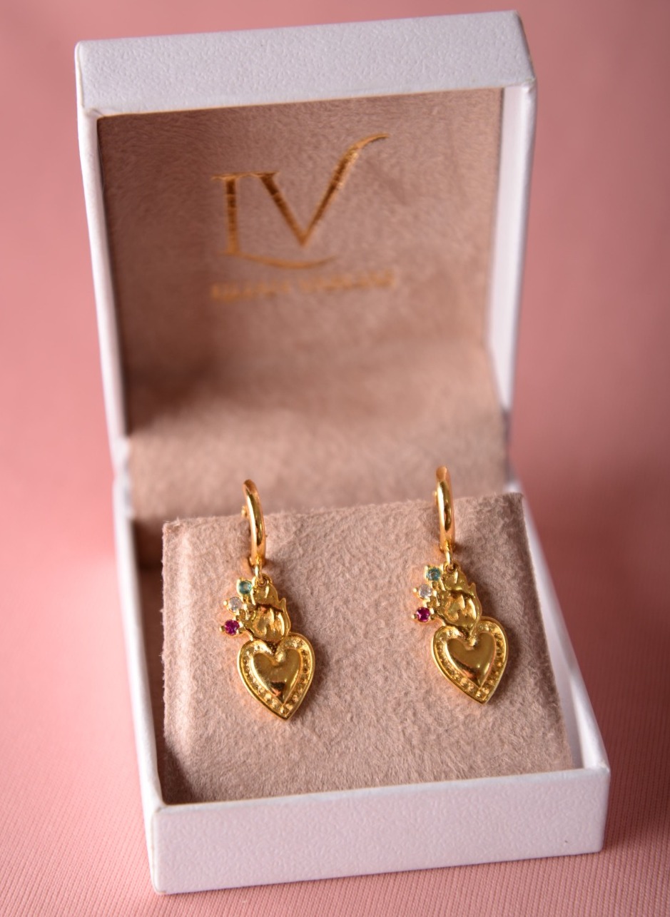 Brinco argola click com pingente Sagrado Coração