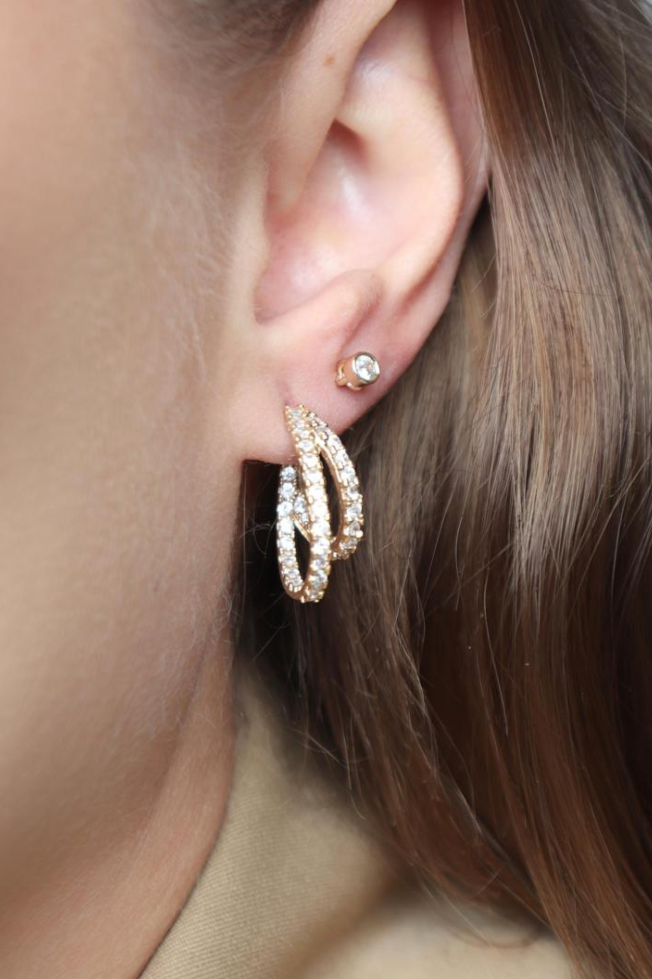 Brinco aro duplo cravejado