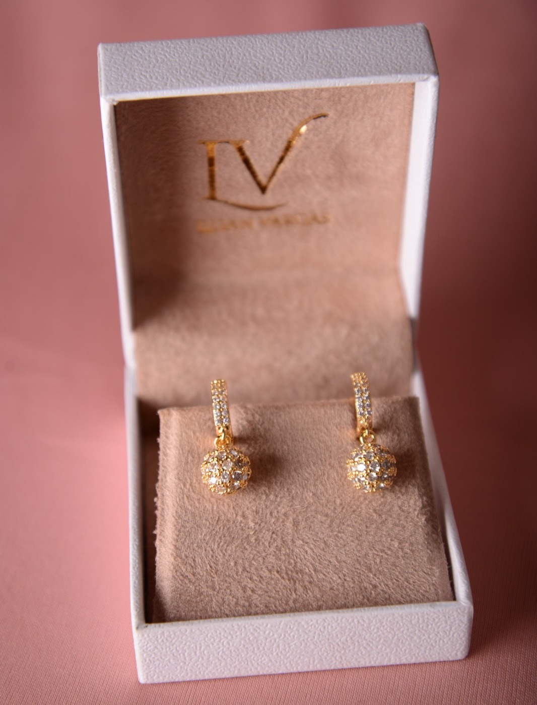 Brinco de argola com esfera cravejada