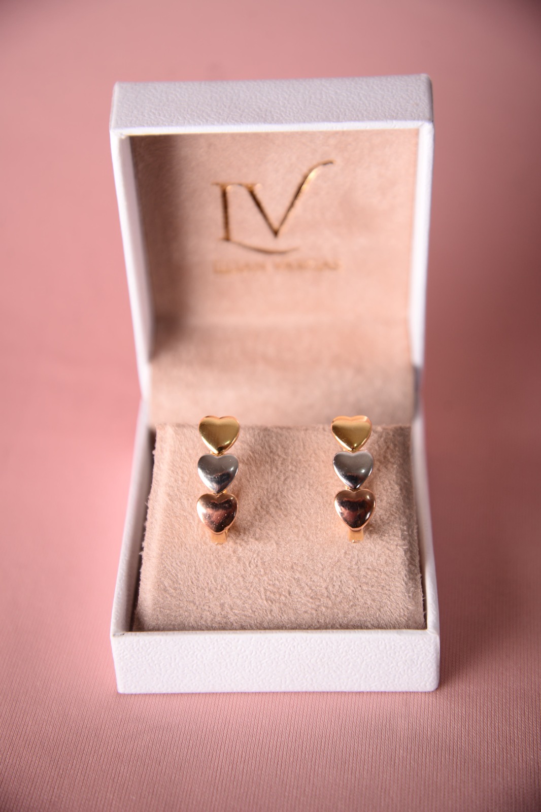 Brinco de coração nos três ouros, fecho click