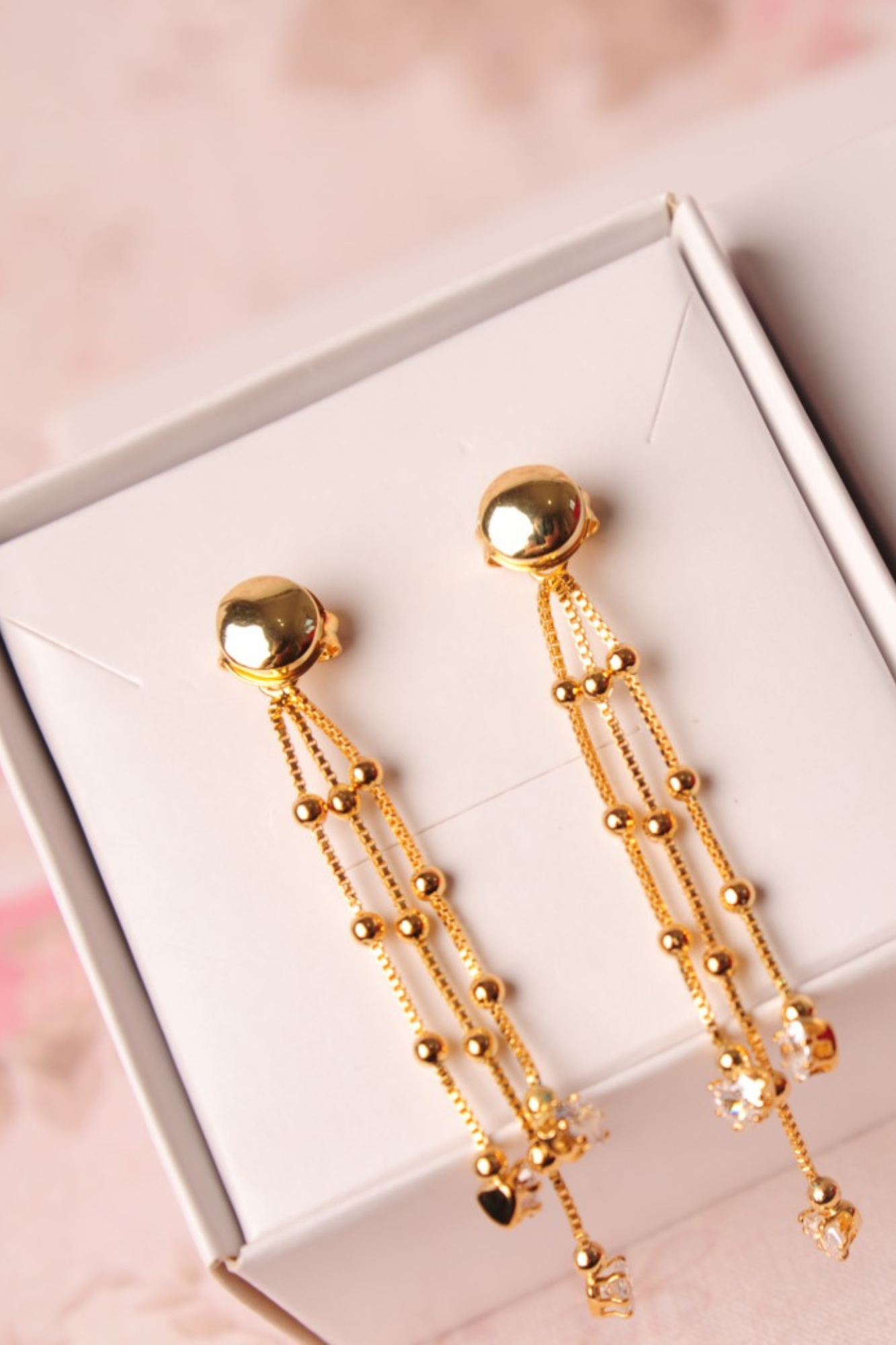 Brinco longo com esferas e ponto de luz