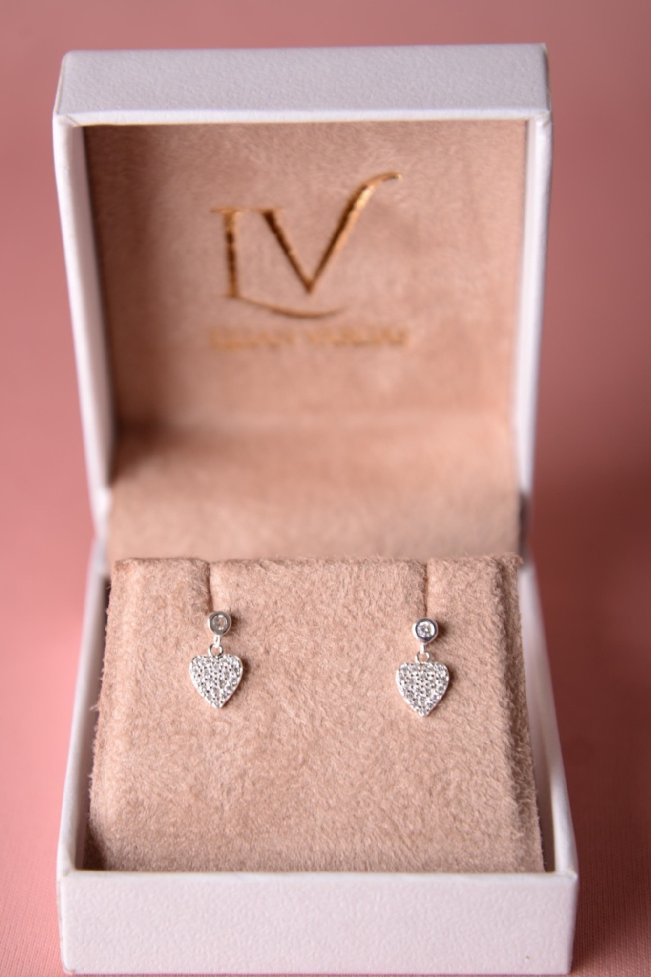 Brinco pingente coração cravejado prata 925