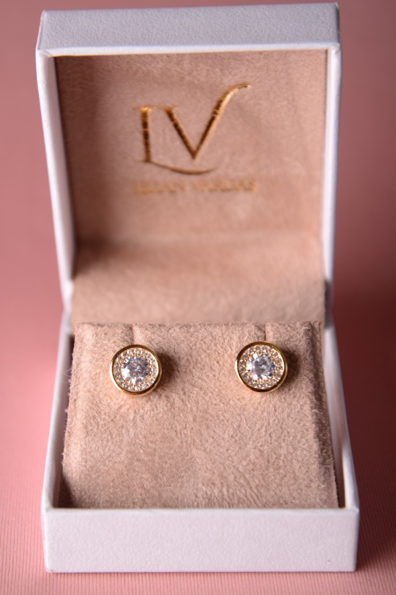 Este brinco circular une a delicadeza da pedra central brilhante com o luxo dos detalhes cravejados ao redor, criando um efeito sofisticado e moderno. O banho de ouro 18K adiciona um toque de brilho dourado e acabamento premium, ideal para compor looks elegantes com discrição.