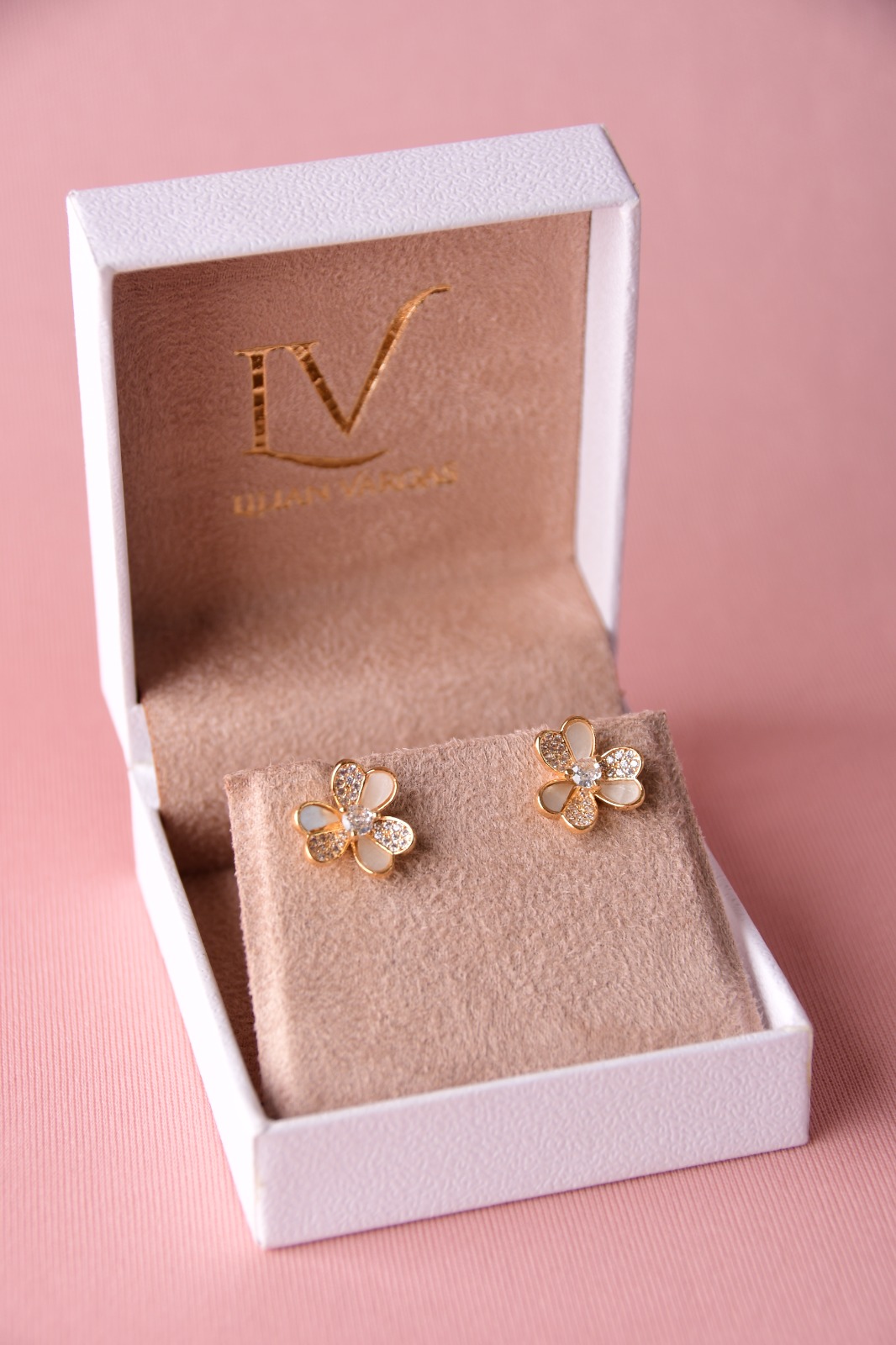 Brinco trevo madrepérola e cravejado