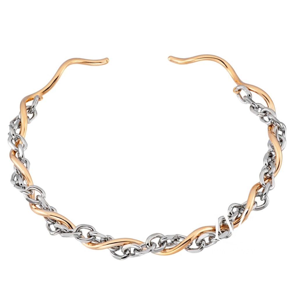 Colar Aro duplo torcido com aro liso dourado e aro correntaria no banho ouro branco ;
