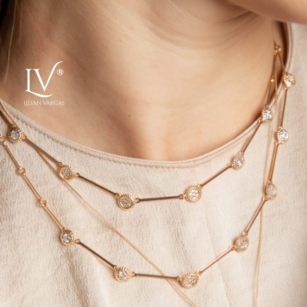 Colar com pontos cravejados Semijóia Banhado a ouro18K tamanho 40 cm + 8 cm extensor
