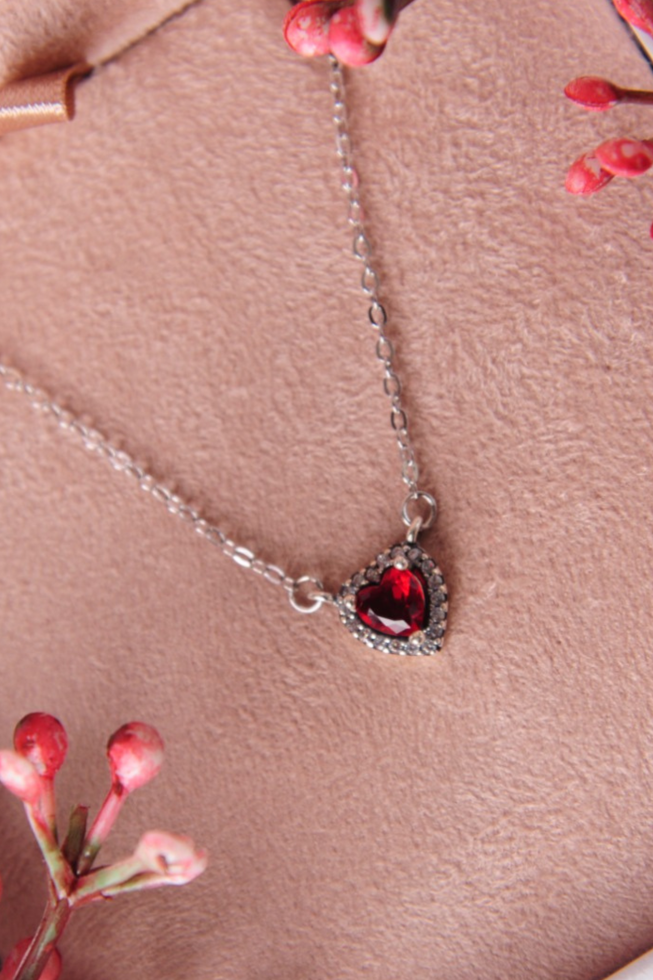 Colar coração vermelho em prata 925