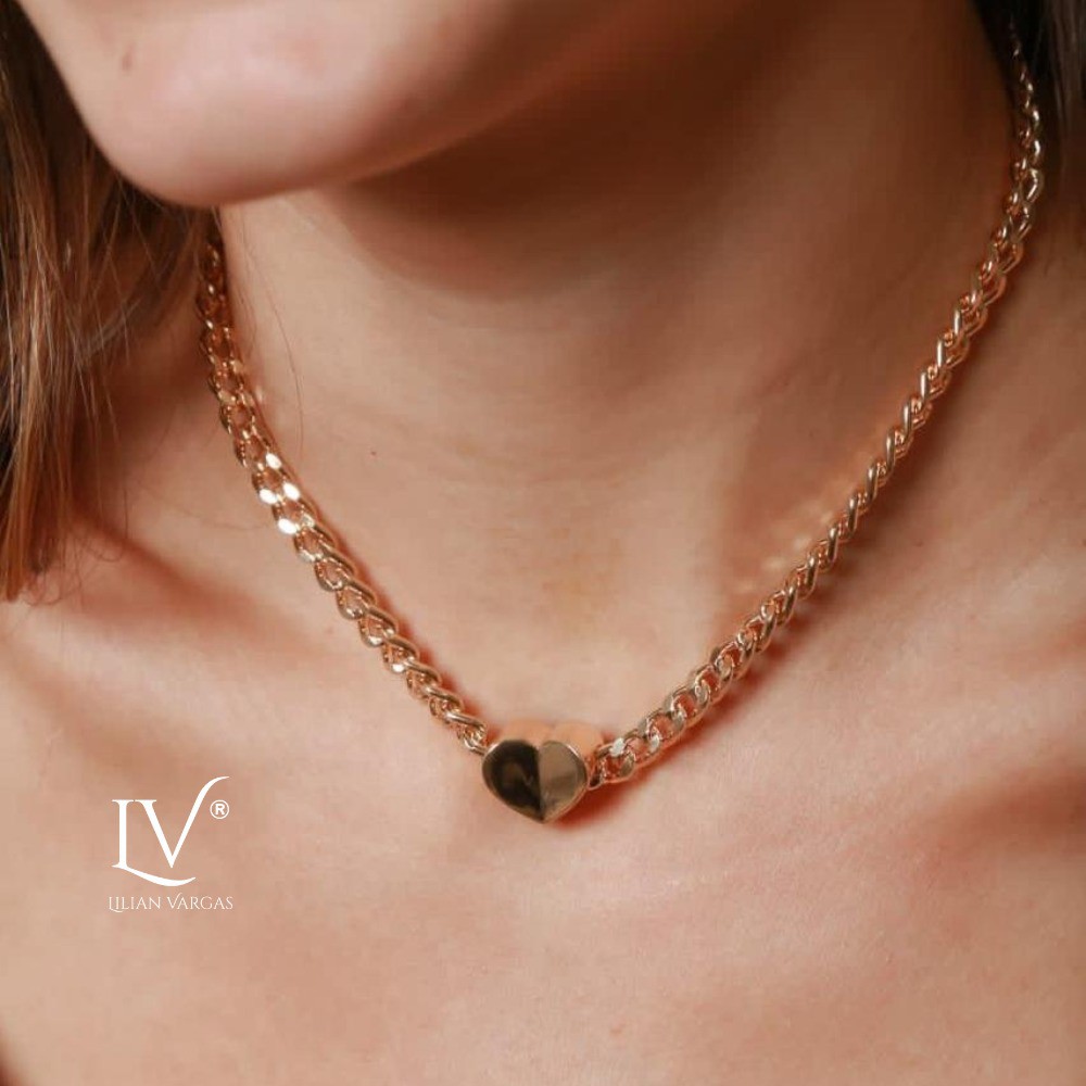 colar correntaria com pingente coração