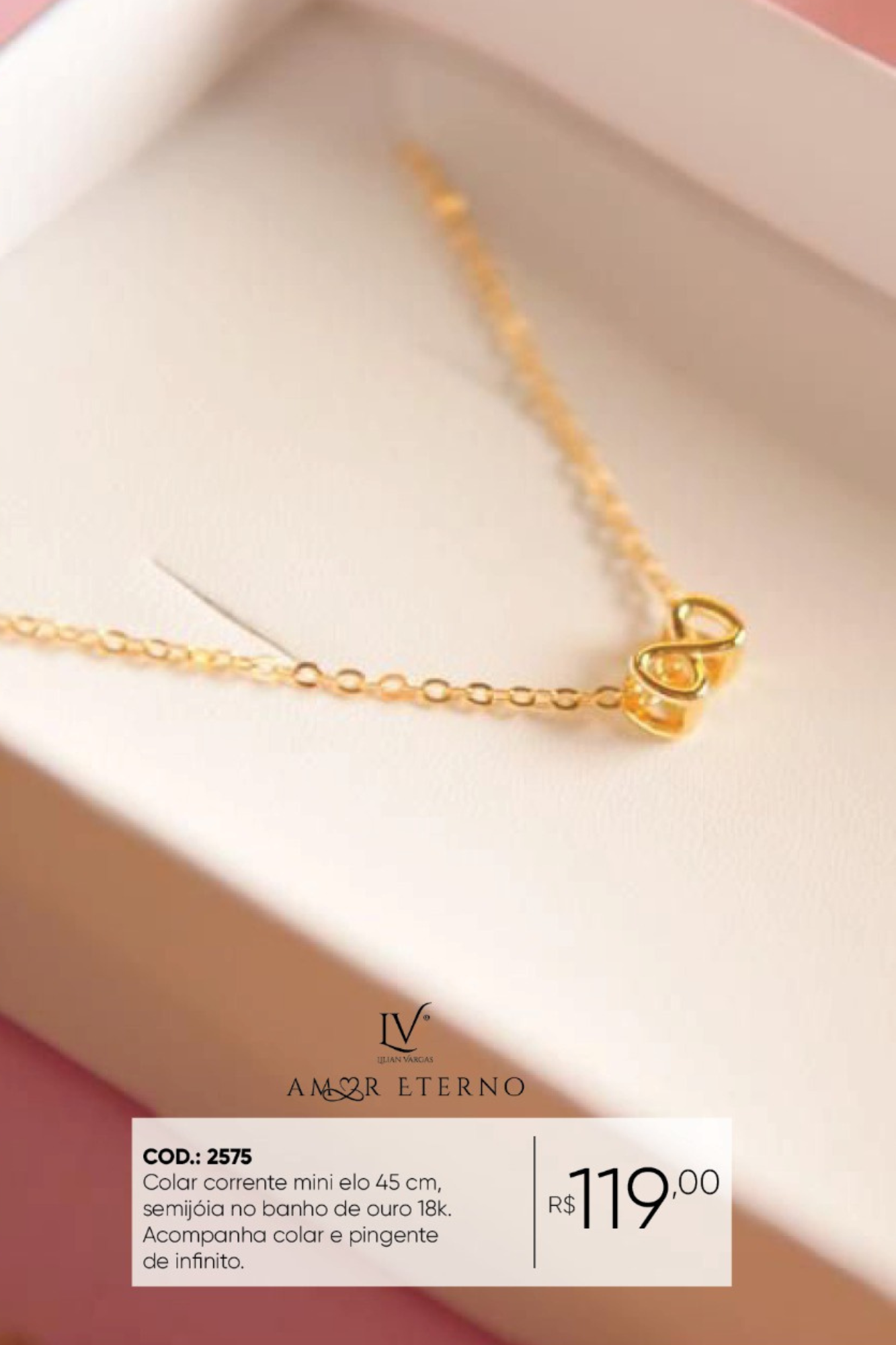 Colar mini elo com pingente do infinito