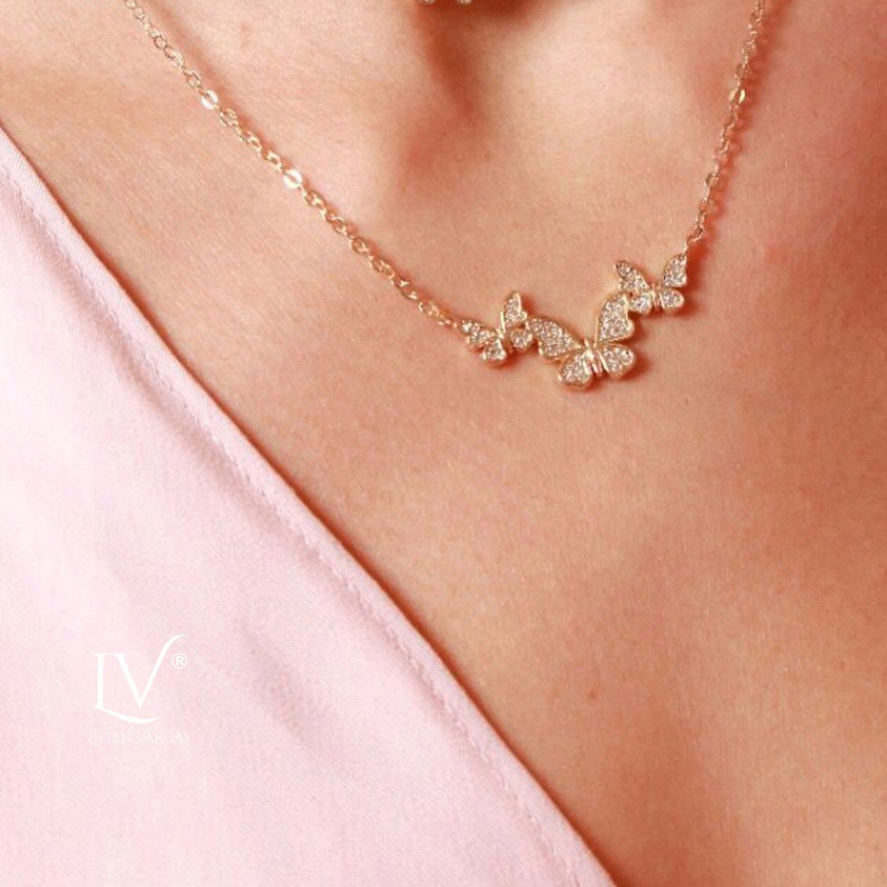 colar no mini elo com pingentes cravejado de borboletas tamanho40 cm + 8 cm extensor