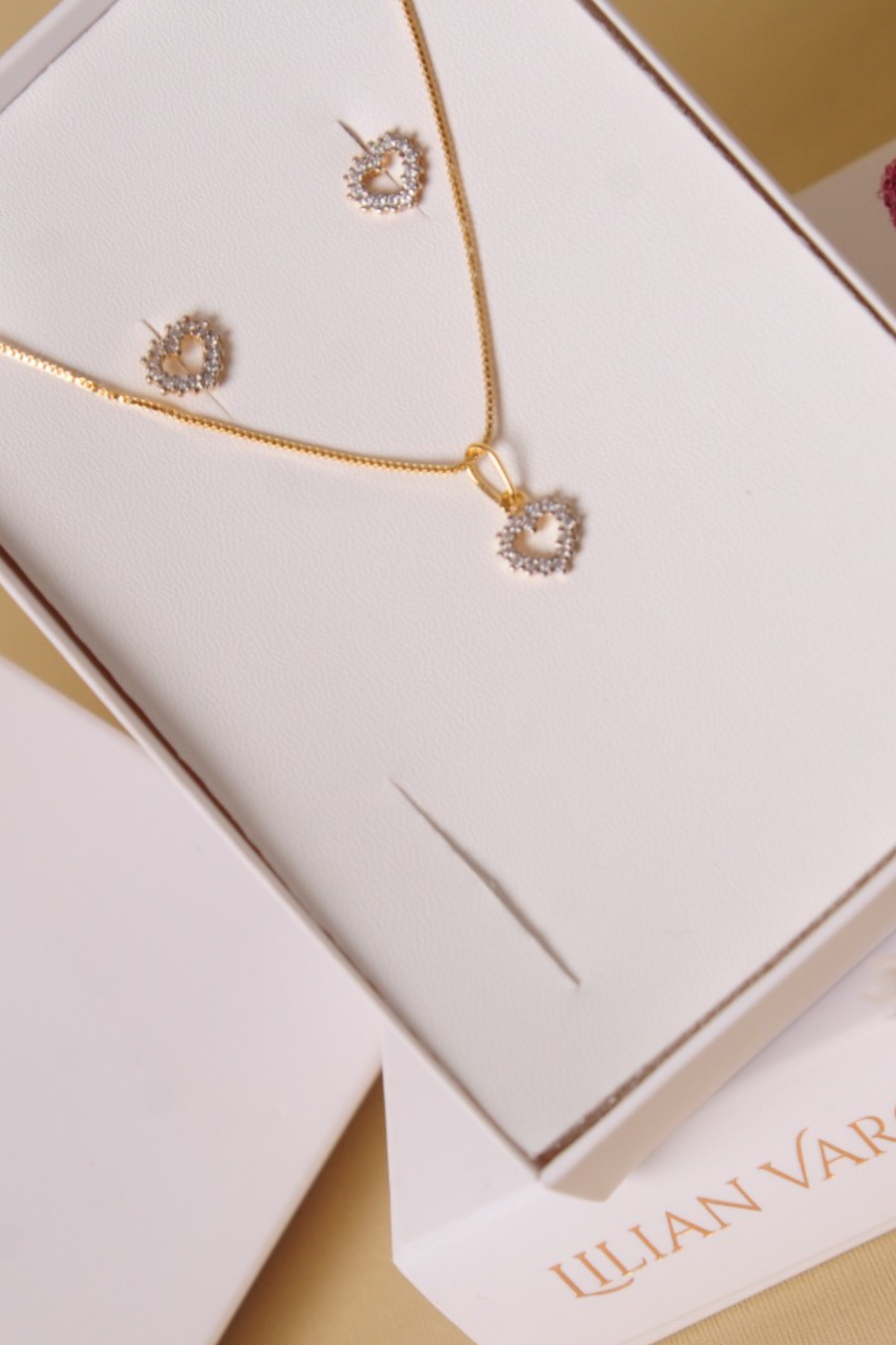 Conjunto colar e brinco coração vazado