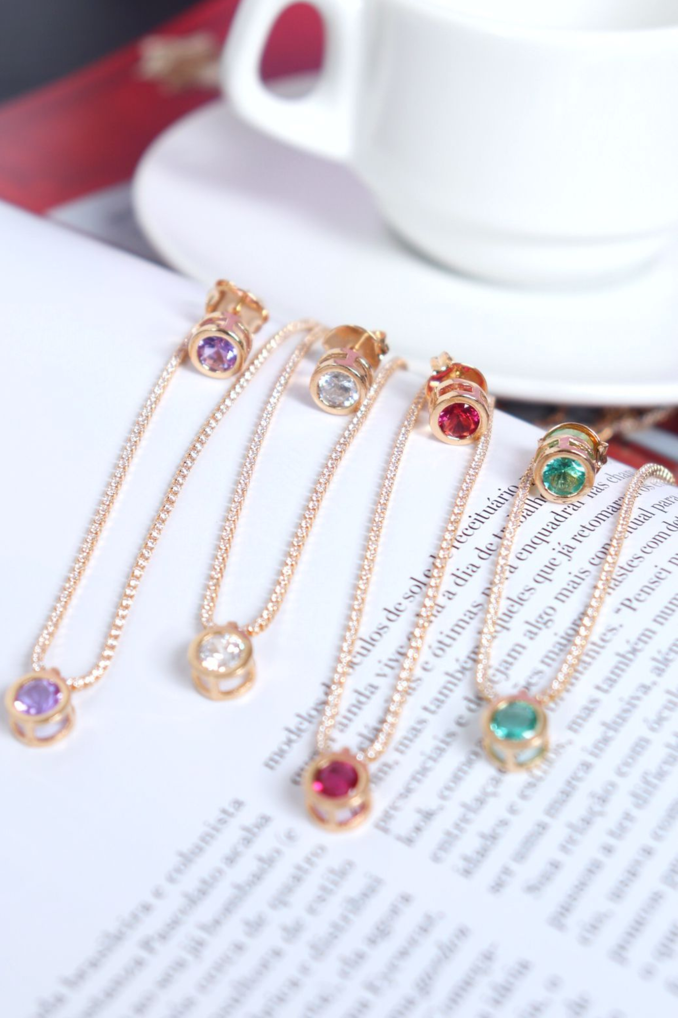 Conjunto colar e brinco riviera com pingente colorido