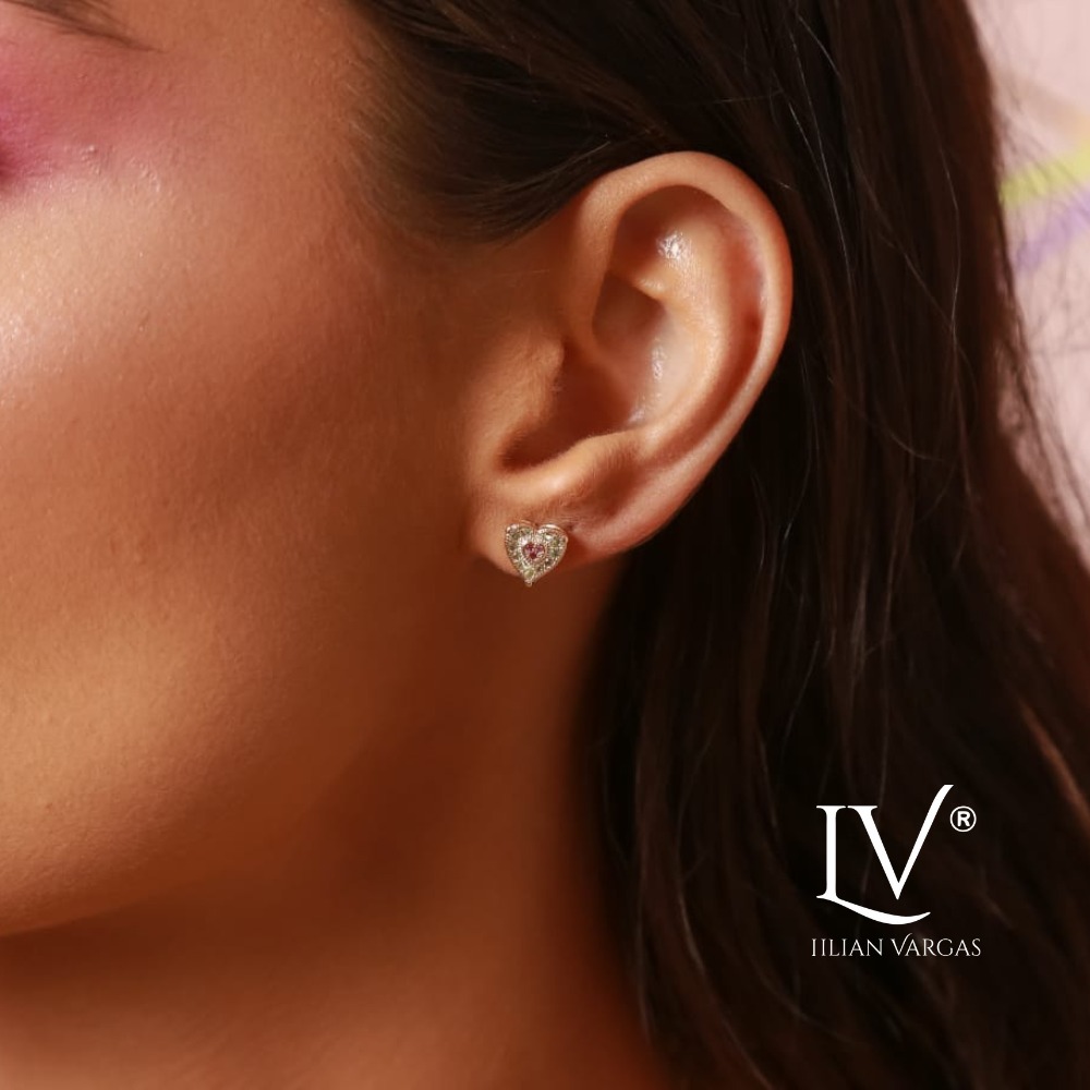 Conjunto colar e brincos, colar com pingentes coração micro cravação com zircônias especiais e corrente 44 cm + 5 cm na veneziana e brincos de pino central;