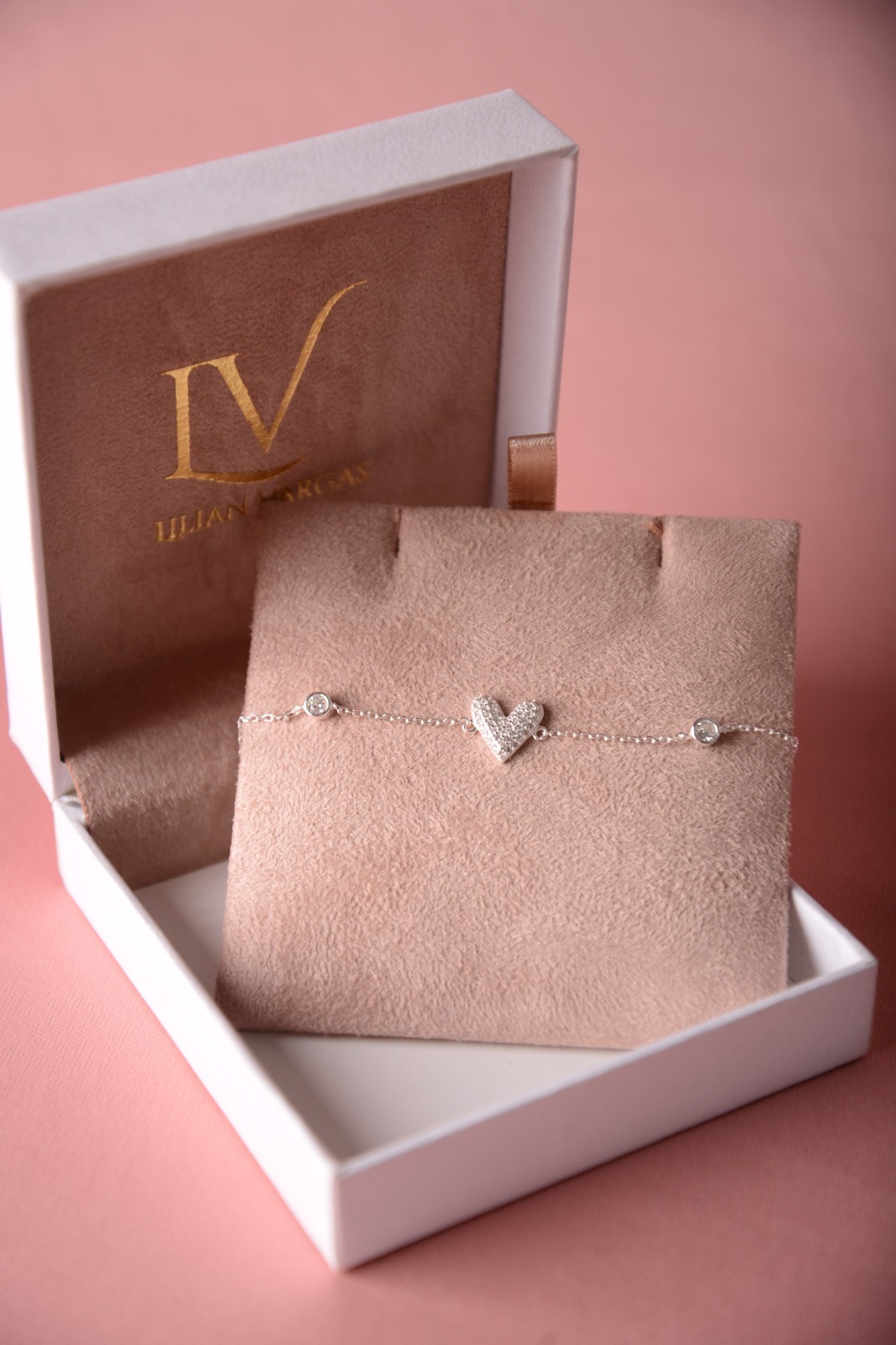 Pulseira coração cravejado