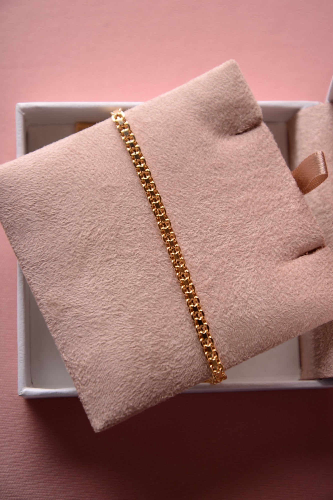 Essa pulseira gold é confeccionada com elos trançados robustos e um elegante fecho gaveta, garantindo segurança e sofisticação em cada detalhe. O banho de ouro 18K proporciona brilho intenso e acabamento de alta qualidade, tornando a peça perfeita para quem ama joias com presença e estilo.