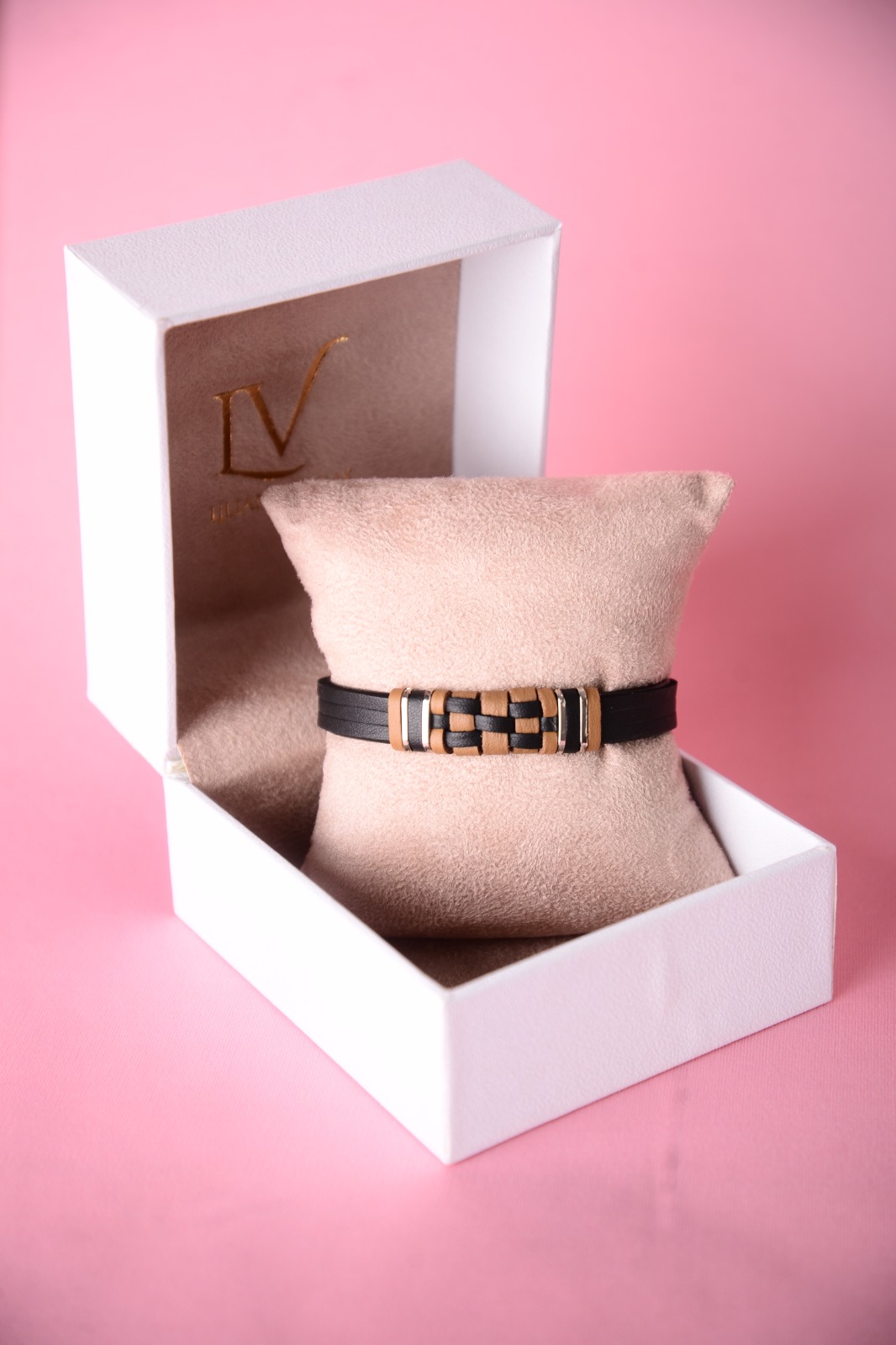 Pulseira quadriculada em couro