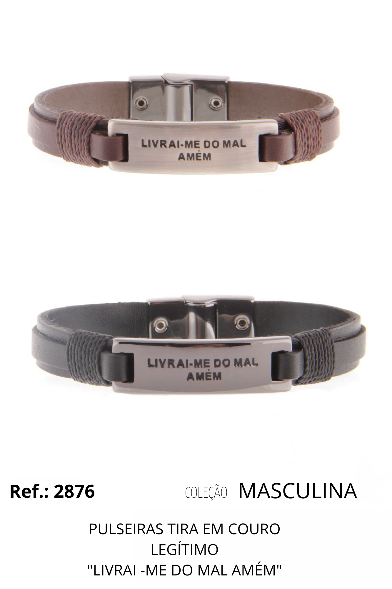 Pulseiras em couro legítimo "Livrai-me do mal, amém"