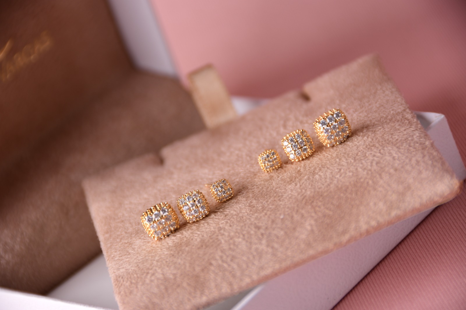 Trio de brincos tarraxa quadrado cravejados